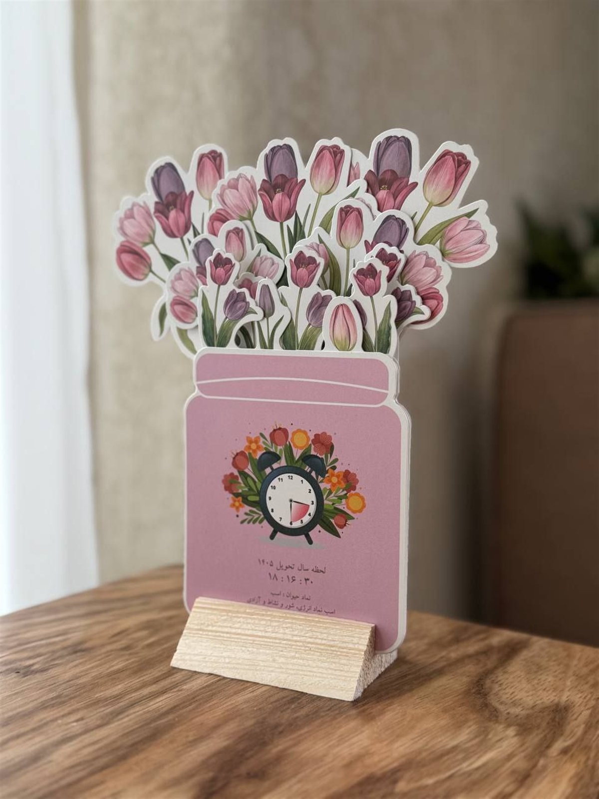تقویم رومیزی گل پایه چوبی